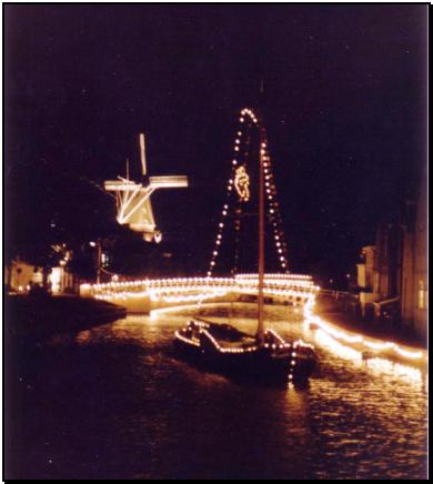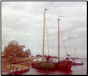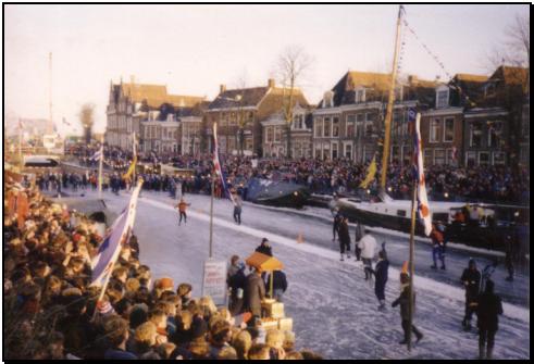 The above picture during Mr Piersma’s ownership, is of Ebenhaëzer moored in the centre of Dokkum during the “11-cities skating race” in February 1987. It is unique in that it is the most famous outdoor skating event in the world. They call at every city of Friesland, being 11 all together, during a skating match (and tour for amateurs) of 220 kilometres. It can only be organised when winter is very severe and the ice is thick enough to carry 20,000 people, which seldom occurs, since the last ten or twenty years. Notice the crowd of visitors on both sides of the canal. The five photos below are also provided from the log of Mr Piersma.