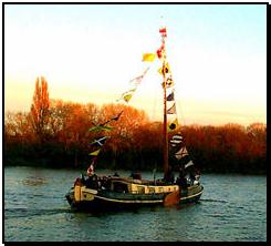 She was still named “Vrouwe Harmke” in 1988 when sold to Mr Geiko Reder who re-named her Geertruida, after a family member. A copy of this contract of sale was obtained and added to the collection of documents. Mr Reder sold her on to her current owner, Rachel Hanna (then Leech) 4 years later in 1992, via a broker, having been viewed in Leeuwarden and she is still fondly referred to as “Gertie”, short for Geertruida. In fact the sale was not finally completed until early 1993, when she travelled by water to the Thames (via Netherlands, Belgium, France and across the English Channel up the Thames, where she was to be based for some years.