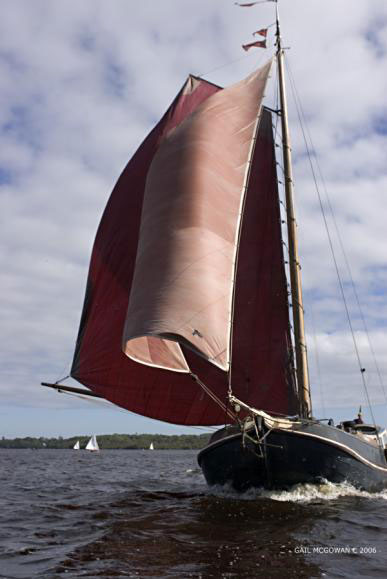 she is a 63ft (inc. fixed bow sprit) gaff sloop rigged, sailing barge